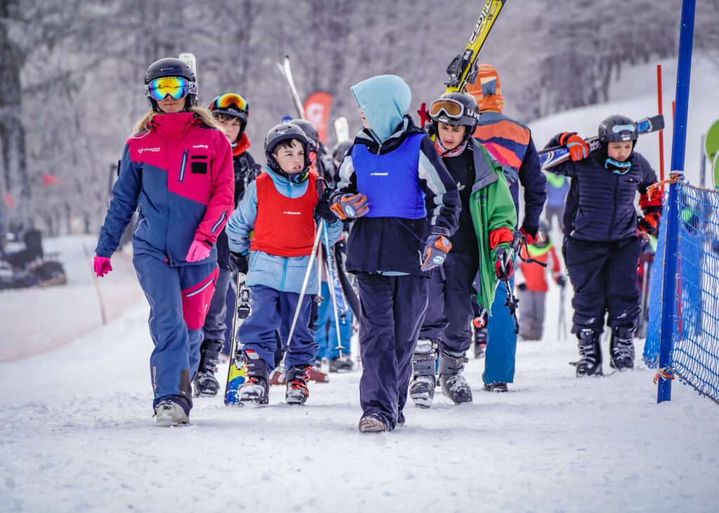 Los alumnos asisten durante una semana al Cerro Chapelco, donde reciben en forma gratuita los equipos, los pases para los medios de elevación, las clases de esquí que se brindan en grupos divididos por niveles, y al terminar la semana reciben un diploma con el nivel alcanzado y comparten un chocolate caliente.