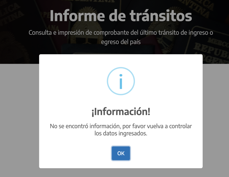 Pero al menos debería mostrarme lo de viajes anteriores. El punto es que pregunta sobre que documento lo hice, por lo que entiendo mostraría por separado lo de sudamérica (que me muevo con DNI) que con lo del resto del mundo (con pasaporte). Posiblemente sea algo que esté implementándose aun.