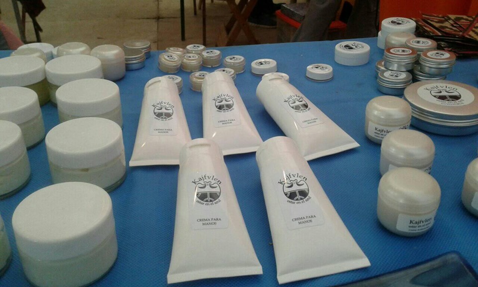Kaljfvlen es un emprendimiento regional que ofrece una línea cosmética y una línea medicinal 100% natural. Luisa Huencho, su mentora, nos relata que sus productos tienen como premisa conectar nuestros cuerpos con la madre tierra y alejarse de los productos químicos que existen en el mercado proveniente de las grandes fábricas. “Mi emprendimiento se llama Kajfvlen . Quise poner ese nombre para reivindicar la figura de mi abuela Florinda Paine Kajfvlen Pigefuy es una palabra en Mapuzugun, significa ‘estar en el azul’, que sería una de la partes del ‘wenu mapu’ la tierra de arriba. Es un lugar de mucho equilibrio, y deseo que mis productos tengan esa impronta que transmita equilibrio”, nos adelanta Luisa.