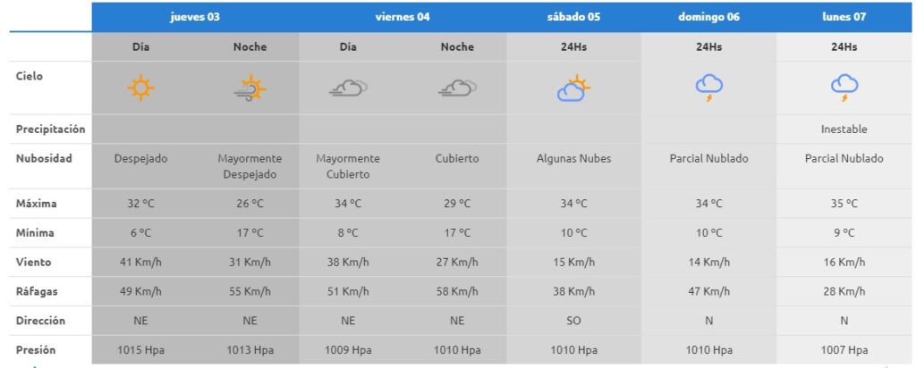 sdr_soft Neuquén: Cómo estará el tiempo Publicación de la entrada:1 de noviembre de 2022 Categoría de la entrada:Enterate Tiempo de lectura:1 minuto de lectura Datos desde el martes 01 de noviembre, hasta el lunes 07 de noviembre de la AIC http://www.aic.gov.ar/ Tiempo bueno, días agradables. Ingreso de aire cálido del norte, soleado y ascenso de temperatura. Pronóstico Extendido Etiquetas: aic, clima Leer más artículos Entrada anteriorPronóstico: Cómo estará el tiempo este fin de semana Siguiente entradaEl finde semana en el Alto Valle, Desempolvamos la malla? También podría gustarte ¡Descubre el Nuevo Restaurante en la Bodega Agua de Fuego de Cutral Co! 12 de agosto de 2024 Vuelve la acción al Magic Arena: ¡MMA y Kickboxing internacional en Casino Magic! 17 de abril de 2025 Tarta de calabaza y atún 🎃 9 de abril de 2020 Deja una respuesta Cancelar la respuestaComentarioIntroduce tu nombre o nombre de usuario para comentar Introduce tu dirección de correo electrónico para comentar Introduce la URL de tu web (opcional)
