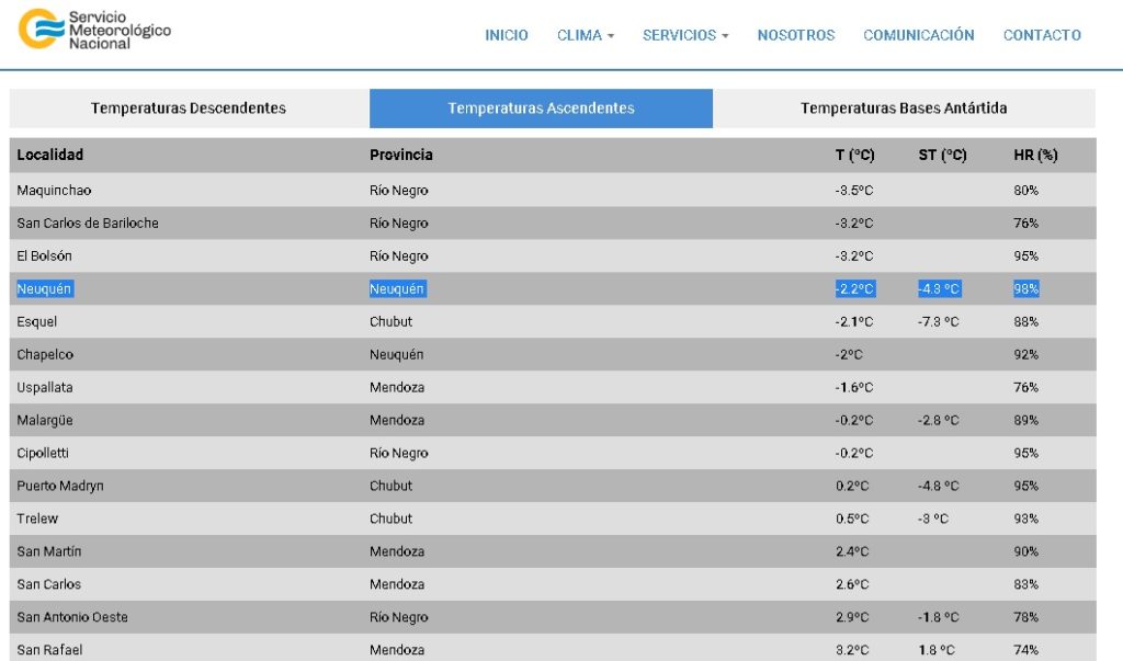 La capital neuquina está cuarta en el ranking de las ciudades más frías de Argentina