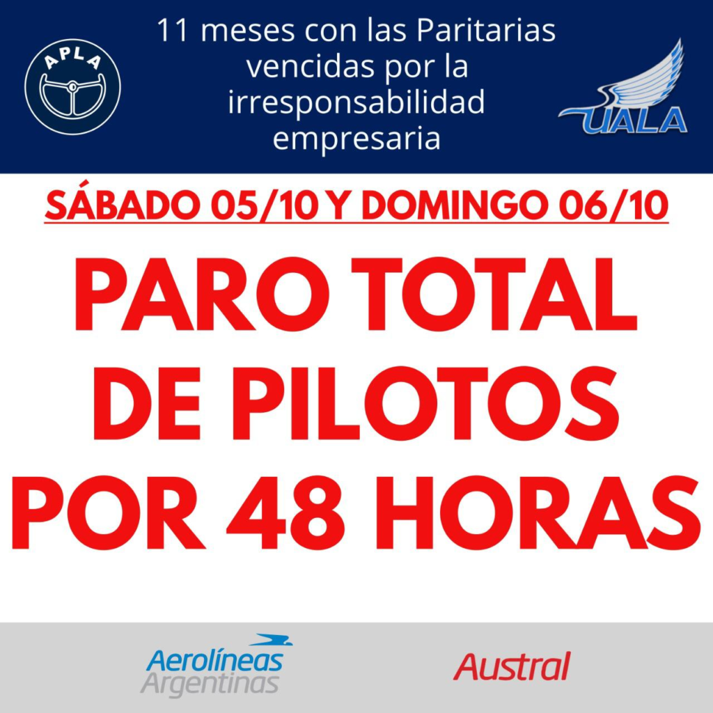 Desde la Subsecretaría de Trabajo buscarán que los pilotos levanten la medida de 48 horas anunciadas para este fin de semana.