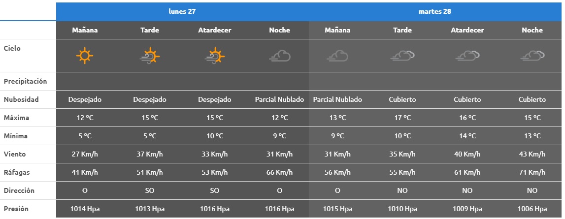 A partir del Miércoles 29 frío, inestable en montaña. Soleado con descenso de la temperatura en toda la región.