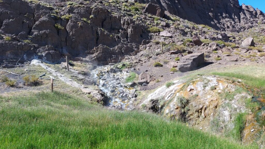 El complejo turístico se encuentra a unos 32 kilómetros de la localidad de Varvarco y a 53 kilómetros de la localidad de Las Ovejas en el Departamento Minas dentro del área natural protegida sistema Domuyo. Un lugar casi al pie del cerro-Volcán Domuyo, en el que se puede disfrutar de aguas termales naturales.